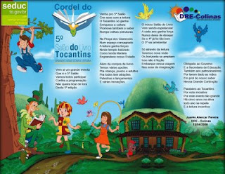 Com cerca de 30 oficinas realizadas nas Escolas Públicas de nossa Regional de Ensino( DRE-Colinas ), Começam a germinar as sementes plantadas da literatura de cordel. Esse trabalho tem sido importante como uma metodologia rica a ser explorada em sala de aula, desenvolvendo em nossos alunos competências e Habilidades referente a produção textual, habito da leitura, expressividade entre outras. Estou satisfeito com o resultado desse trabalho. Parabéns as Escolas, professores e alunos que tem apostado no nosso trabalho na Literatura de Cordel. Veja alguns trabalhos produzidos pelos alunos. Juarês Alencar Pereira Ass. de Curr. Hist. DRE-Colinas.