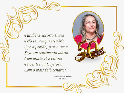 SOCORRO LUNA CINQUENTENÁRIA, PARABÉNS!